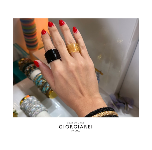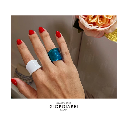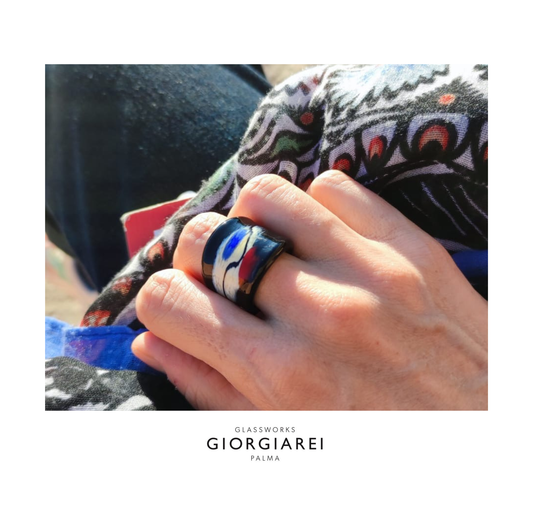 Each ring is individually made from Murano glass by European artisans who transform glass into wearable art, creating contemporary designs full of brilliance and elegance.