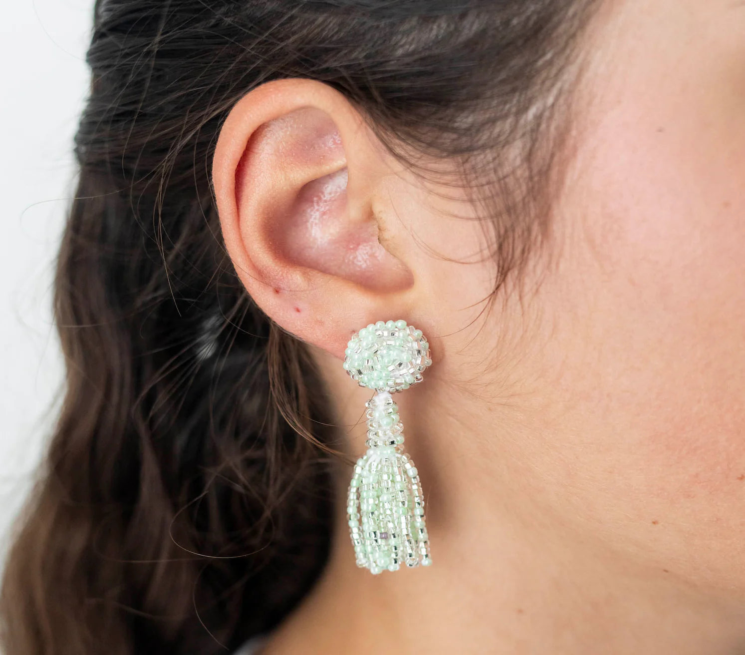 • Beaded post with beaded tassel. 3" Drop